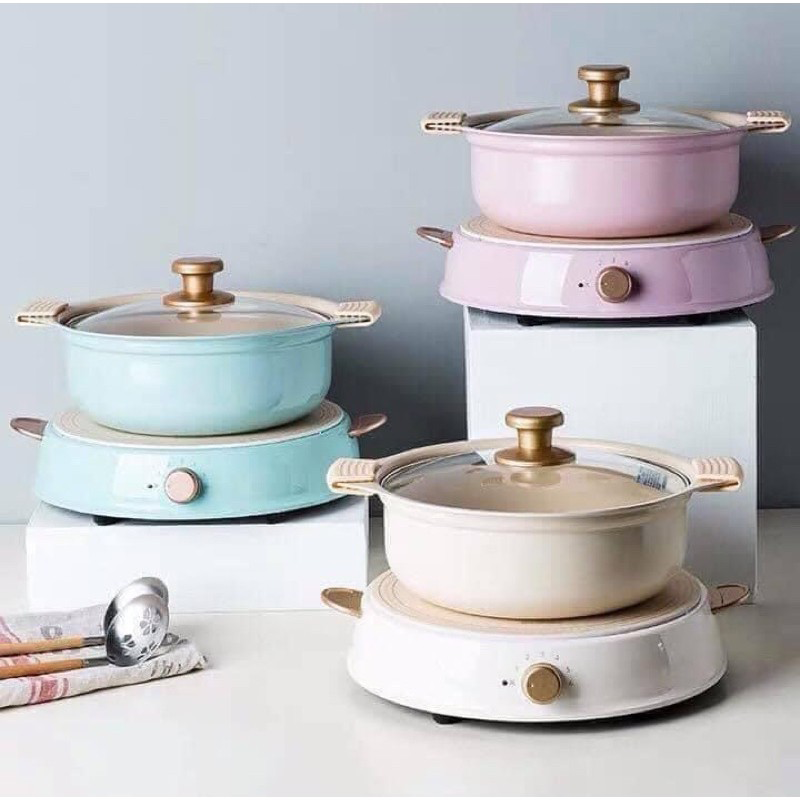 Nồi lẩu Ricopa có 3 màu : hồng pastel, màu kem trắng, xanh blue pastel. Cả 3 màu đều rất xinh, chủ yếu là hợp với tông bát đĩa nội thất nhà khách thôi chứ mình thấy màu nào cũng đẹp.